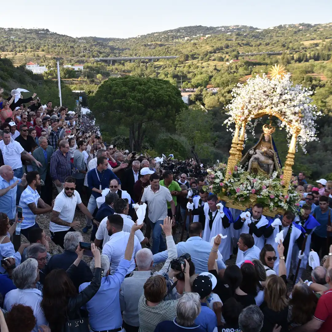 After the 15 days, the “Big Feast of the Sovereign Mother” will be held, in which the patron saint returns to her sanctuary. After the saint leaves the Church of São Francisco, the procession travels through the streets of Loulé, to the rhythm of marches, with a mass held near the building built in memory of Engineer Duarte Pacheco, and later taken to the Convento do Espírito Santo. Santo, and following the way back to the Sanctuary.