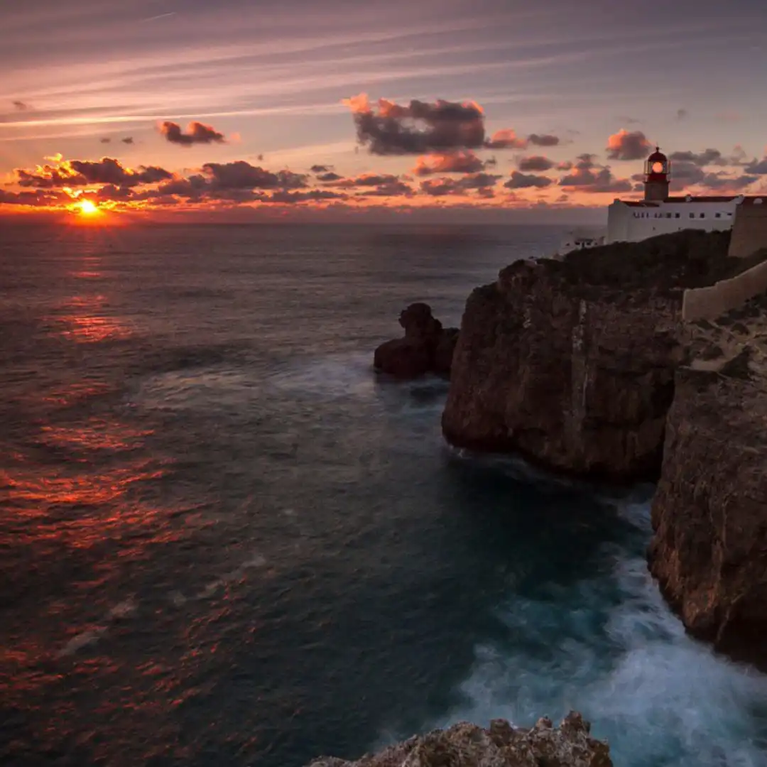Ponta do Cabo de São Vicente, also known as “the end of the world”, as it was from this place that caravels went out to discover, at the time of the “Descobrimentos”, it is a meeting place for many people to watch the sunset.