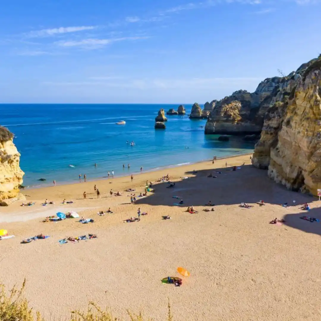 Praia Dona Ana is located in an area known as Costa D’Oiro, a name that derives from the tonality that the rocks around the beach have. In 2013, by Condé Nast Traveller magazine, Praia Dona Ana was considered the best beach in the world and the most beautiful in Portugal. In 2015, it was elected the best Portuguese beach by TripAdvisor. Due to the fact that it is very popular in the summer season, it is sometimes difficult to find parking near the beach, with scooters being an excellent option for transport and mobility.